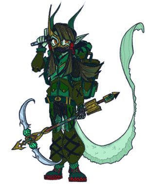 Standing at roughly 5'6'' (~157cm) tall, Jeanine is a softly mint green colored cambion with a mix of subphibian blood that courses through her body. One that is connected to that of a specific breed of suphibian castrellan frogs native near the southern-east side of Castrella. This of course, is the reason behind her abnormally long tadpole-like cambion tail, and the unique scaling on her body existing. If measured by the height of her dark green horns however, Jeanine would be roughly 6'0'' (~182cm) tall in height. An estimate for her tail length is yet to be recovered (that tail has been said to be surprisingly elusive).