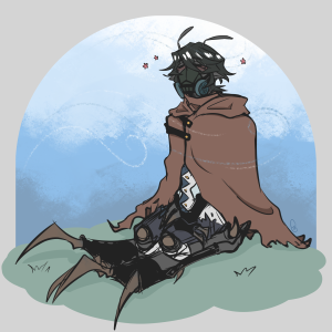 Senti Original Outfit when he first joins the guild and Contingency Division on his first year with cloak